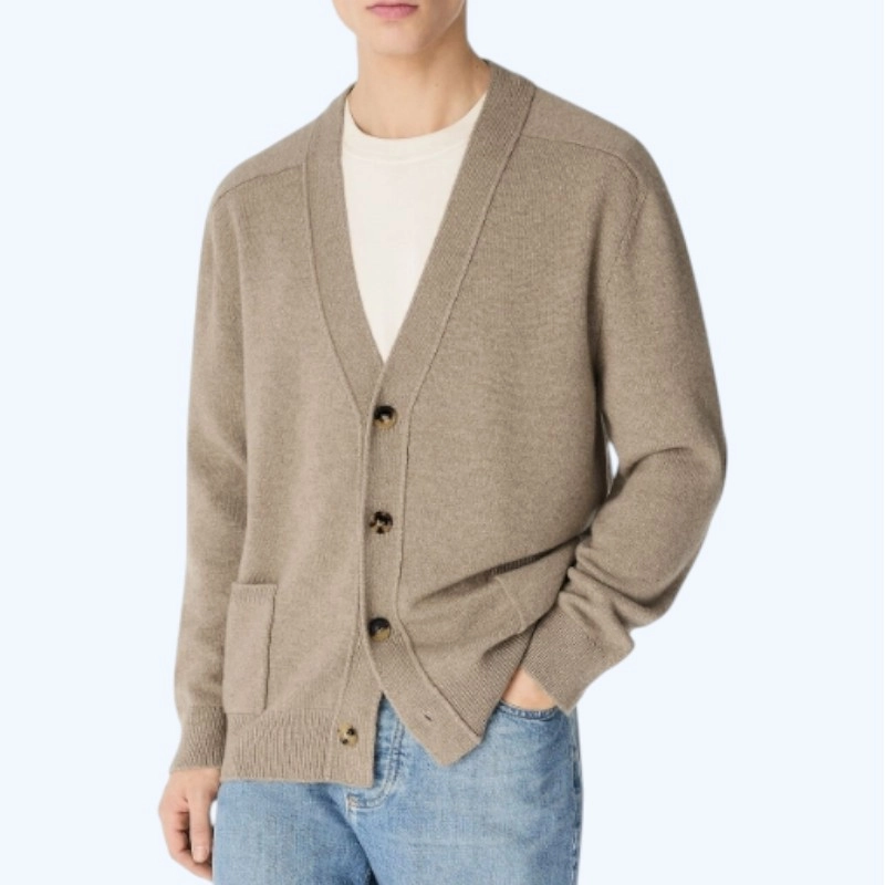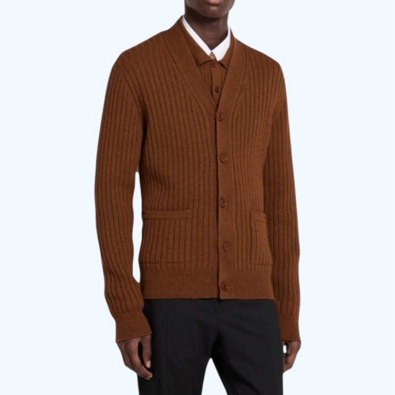 구찌 리브 울 캐시미어 니트 가디건 브라운
