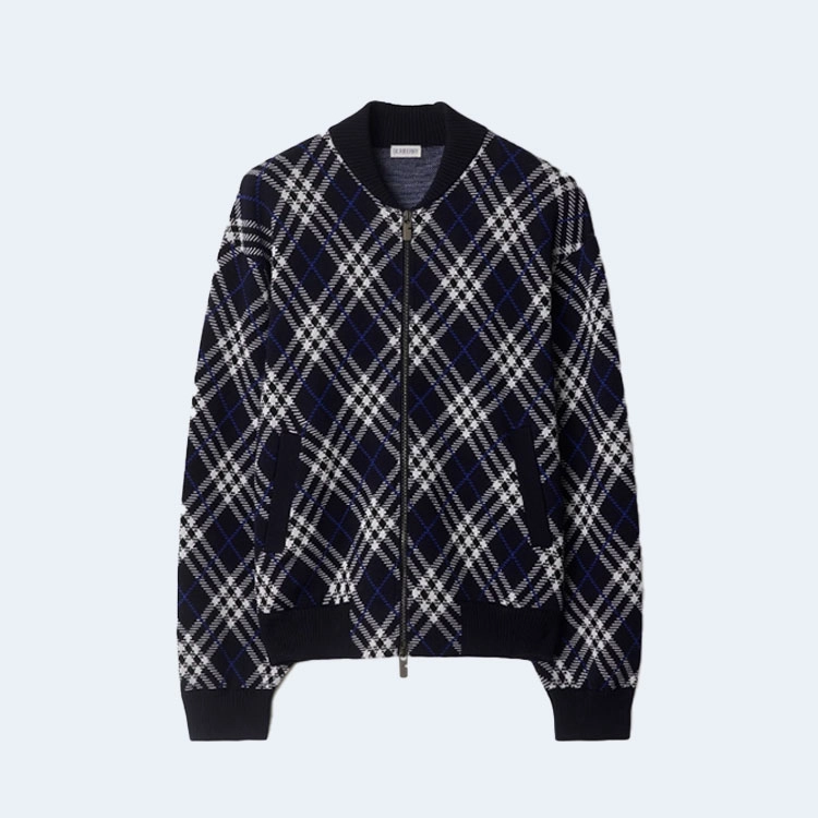 버버리 체크 울 블렌드 봄버 재킷