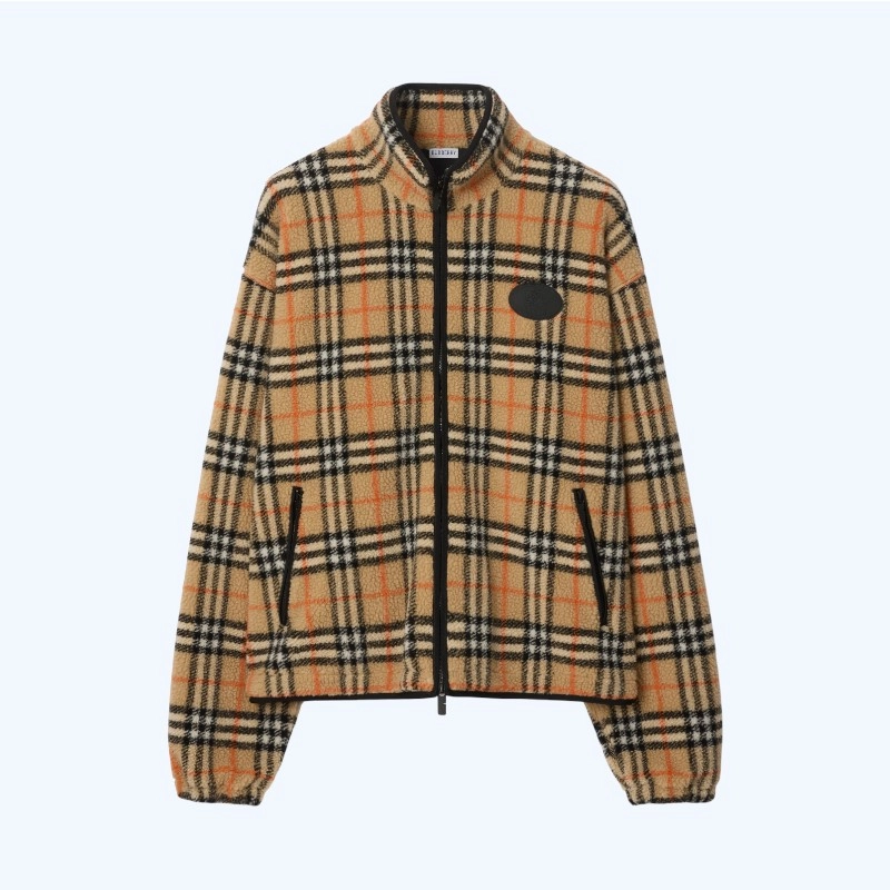 버버리 체크 울 캐시미어 블렌드 플리스 자켓
