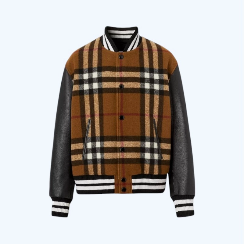 버버리 체크 테크니컬 울 앤 레더 봄버 자켓