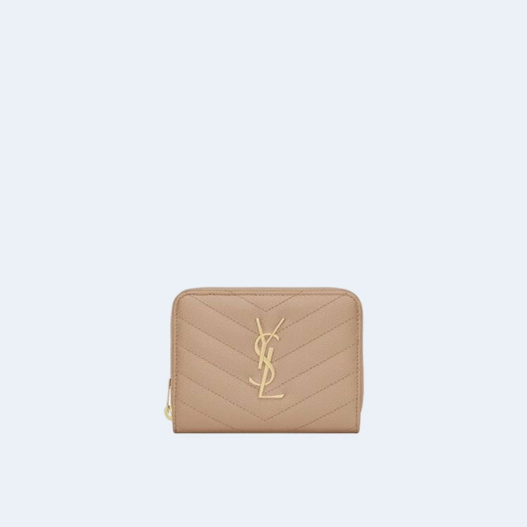 생로랑 컴팩트 지퍼 어라운드 월릿 베이지 골드