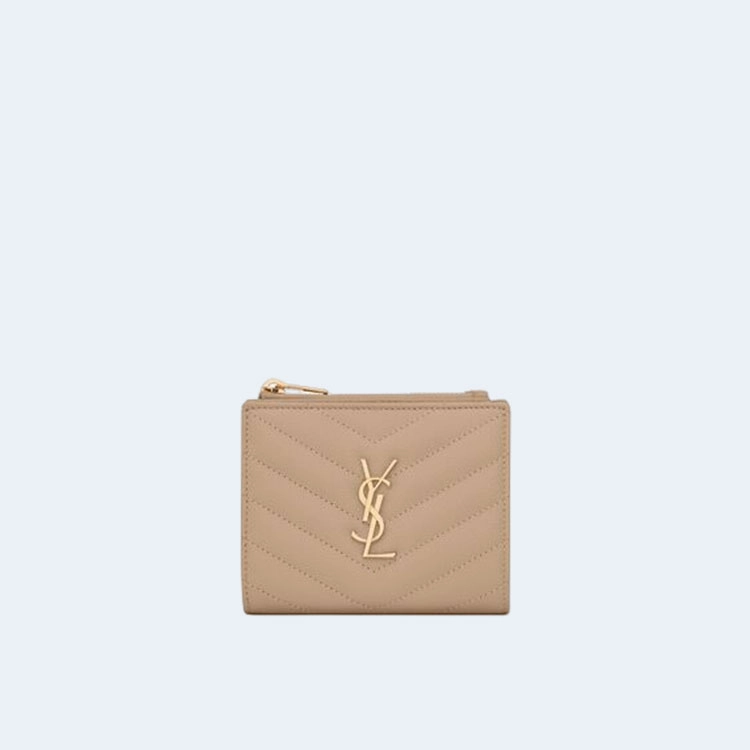 생로랑 모노그램 2단 지갑 베이지 골드
