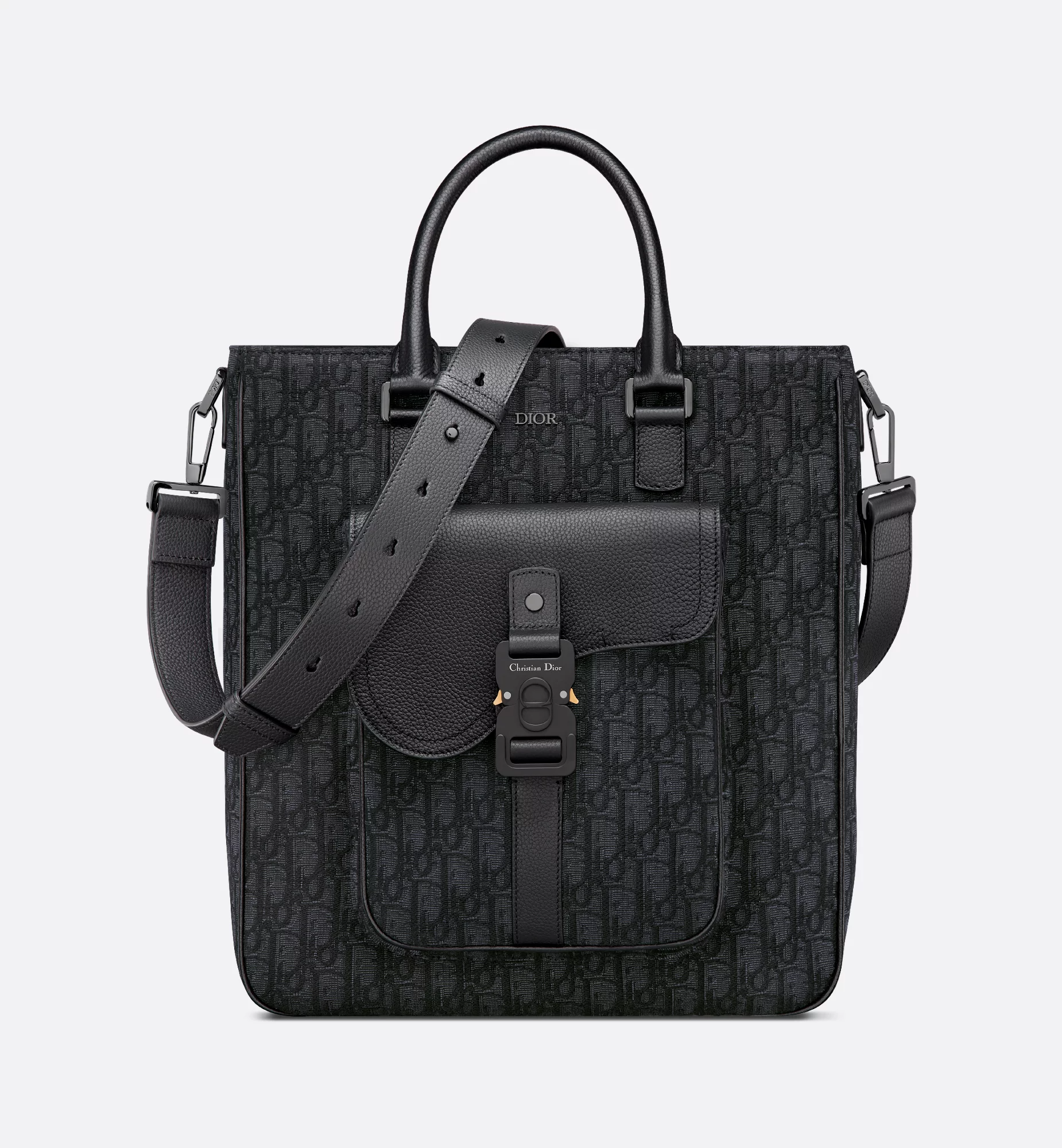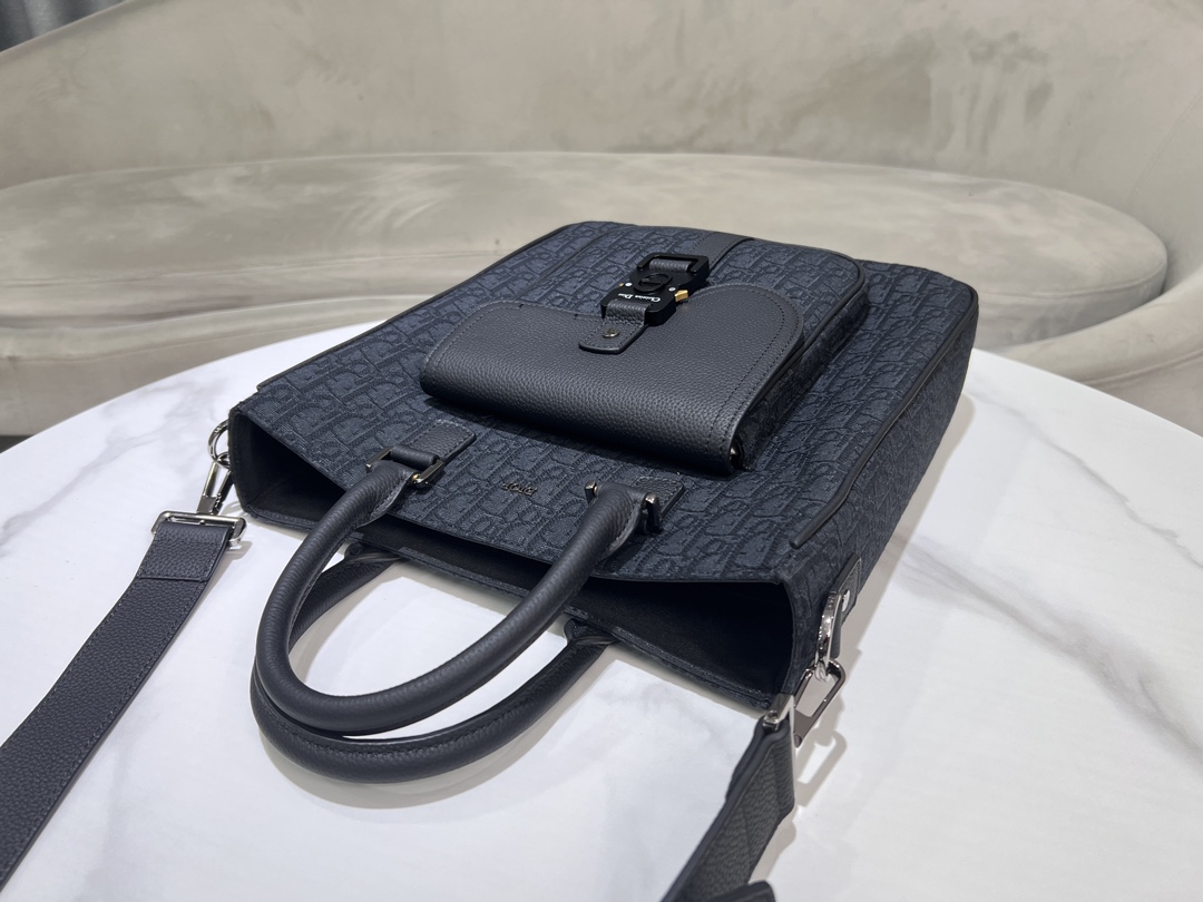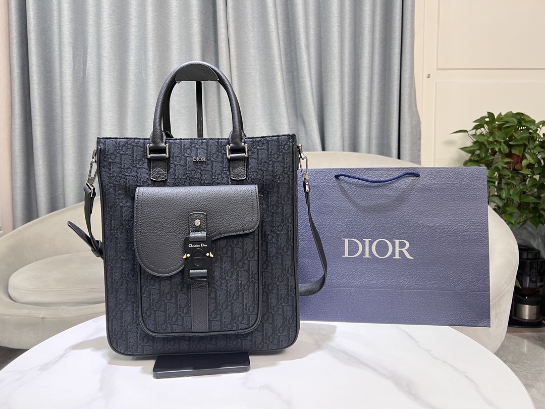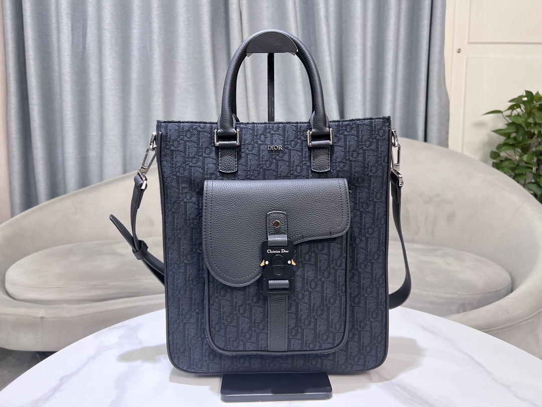 디올 오블리크 자카드 새들 토트백 블랙 그레인