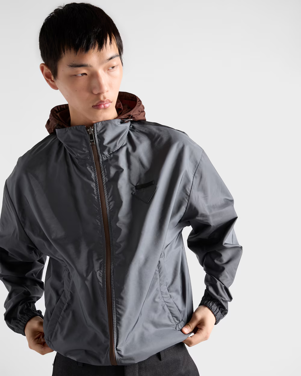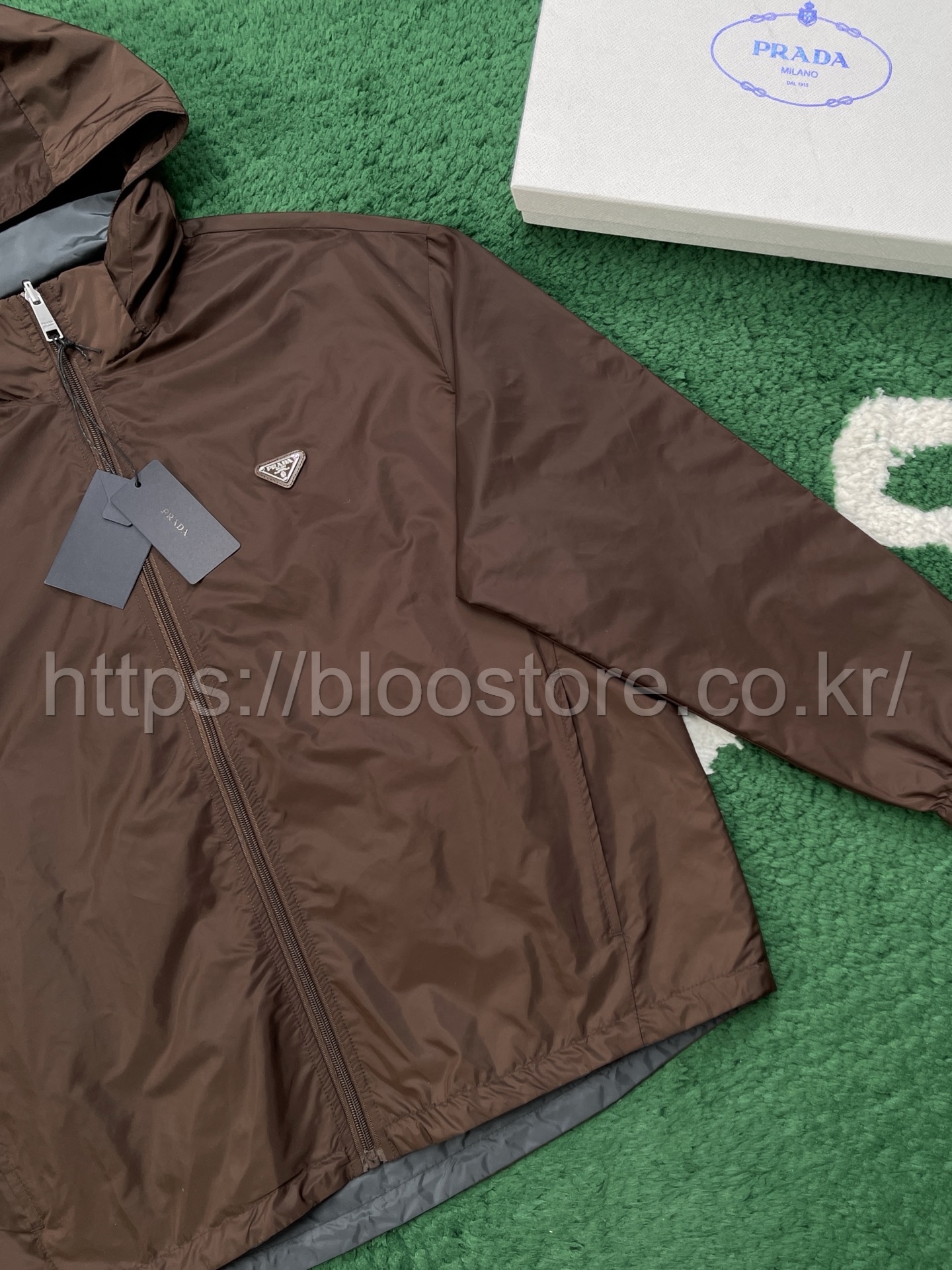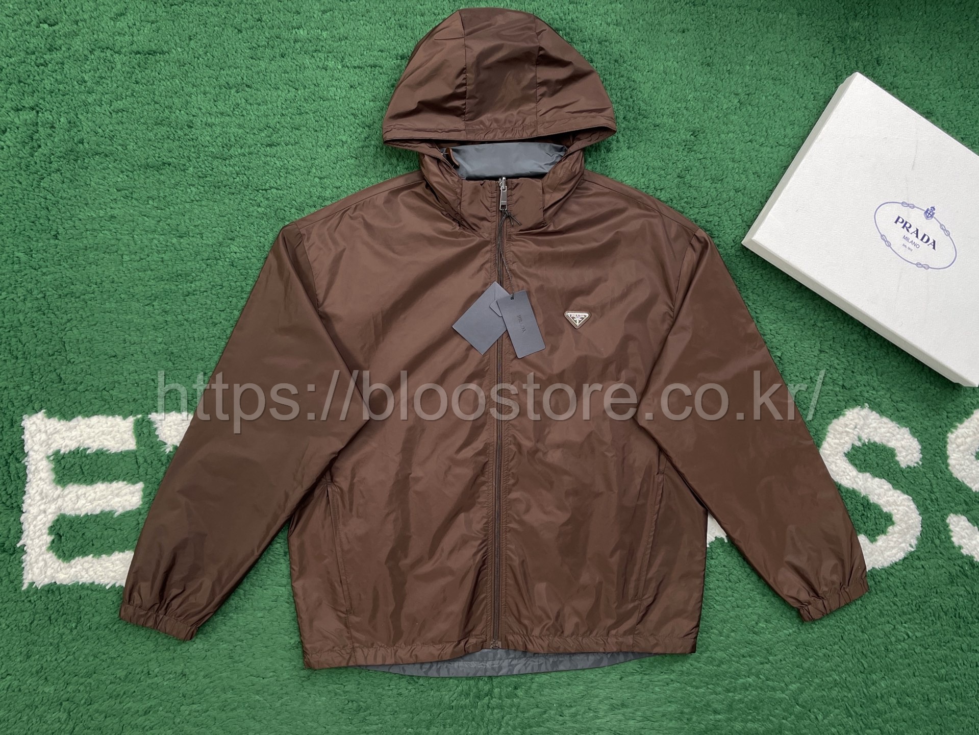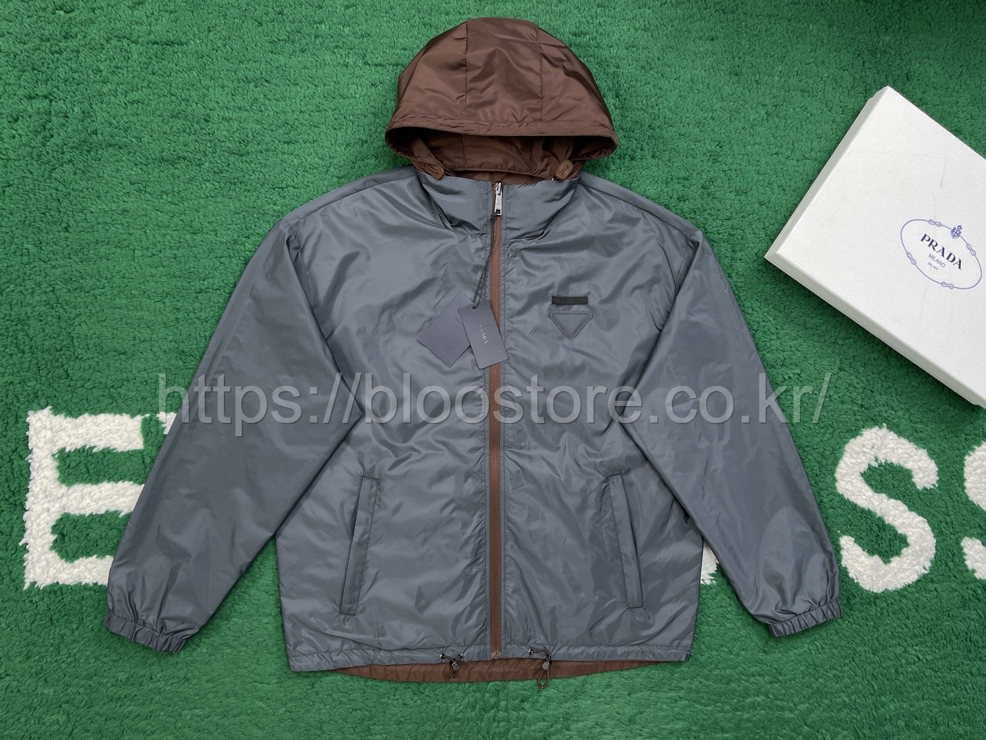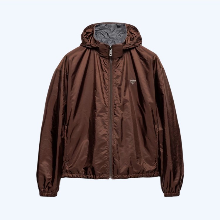 프라다 리버시블 리나일론 자켓 코코아 브라운 아이언 그레이