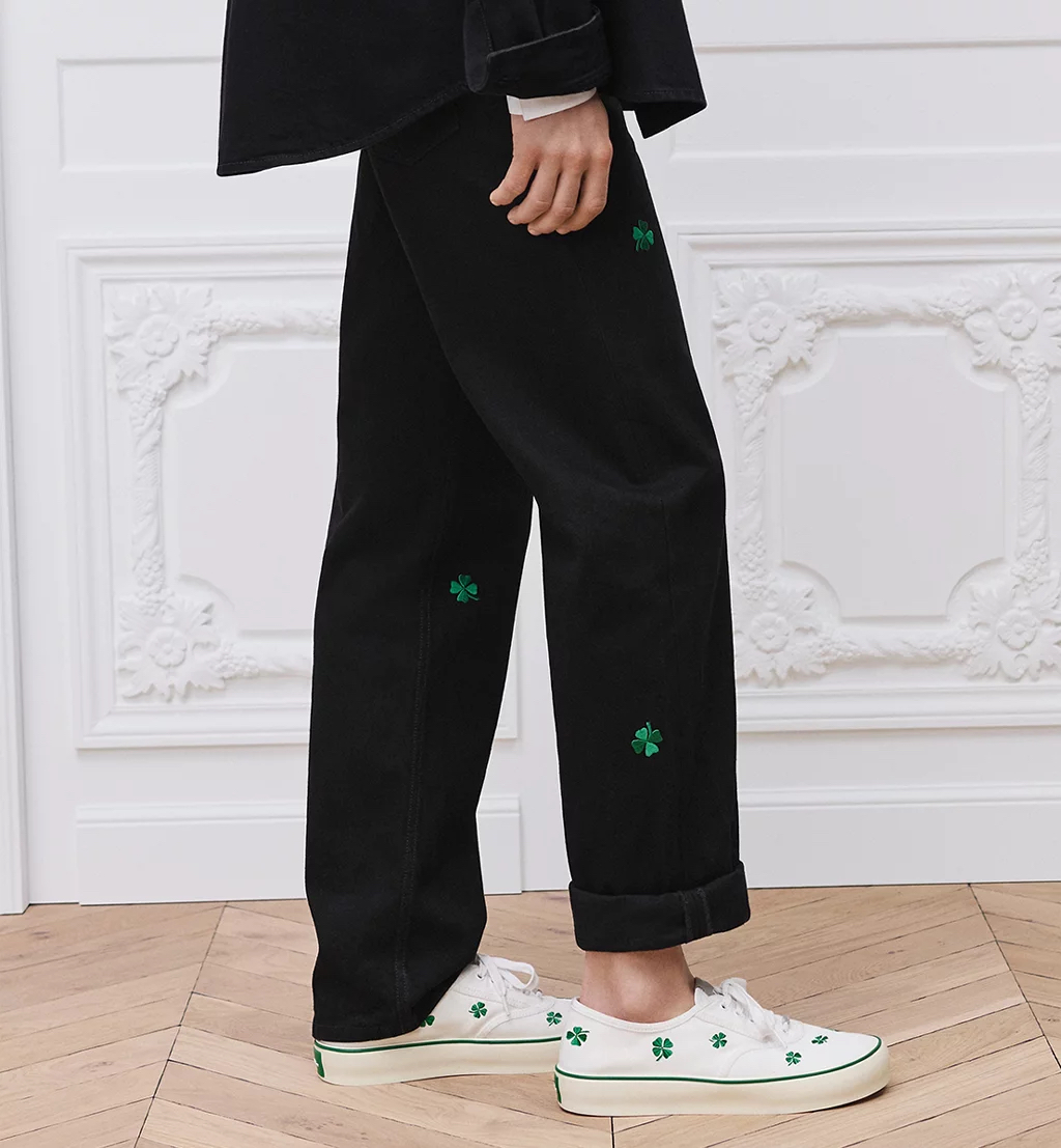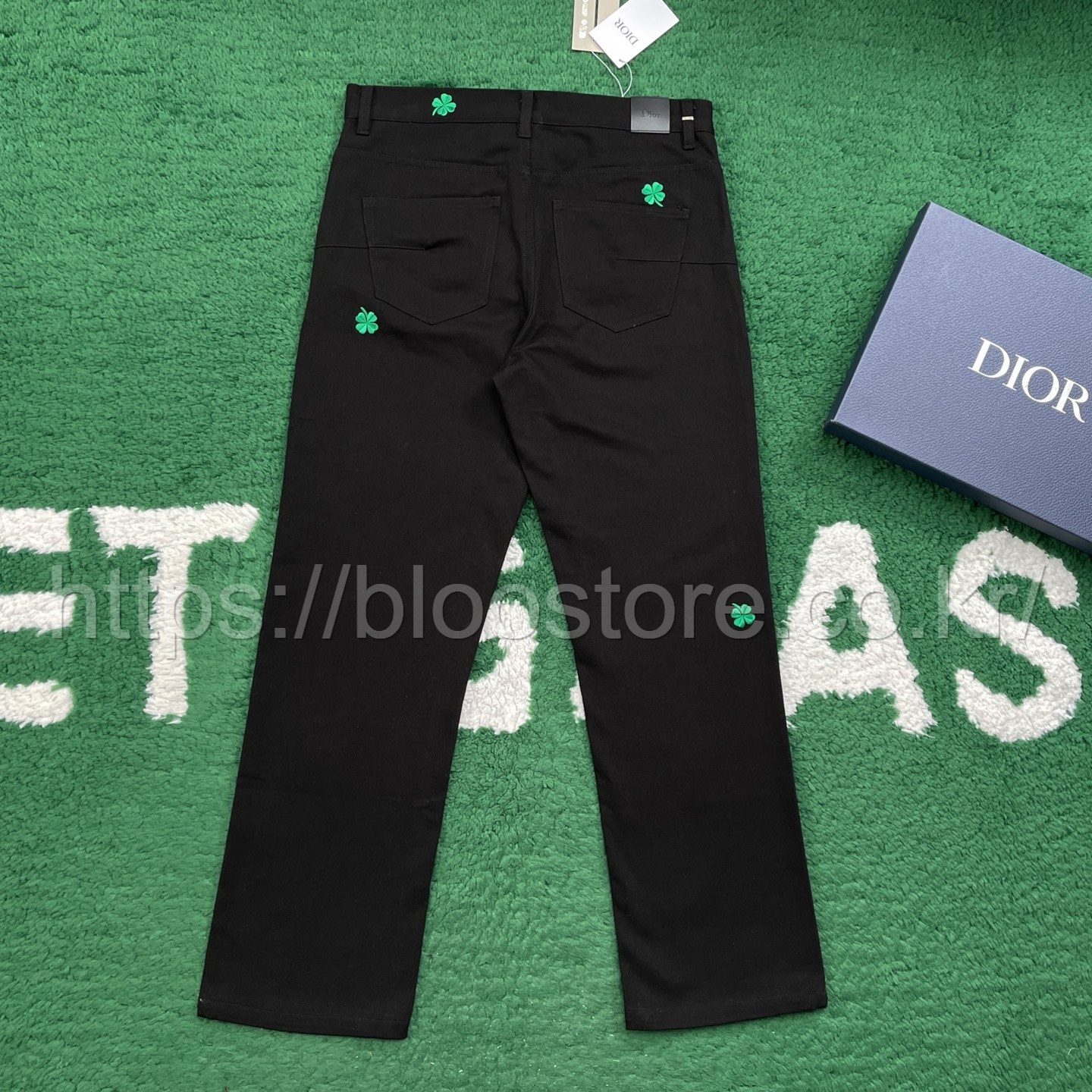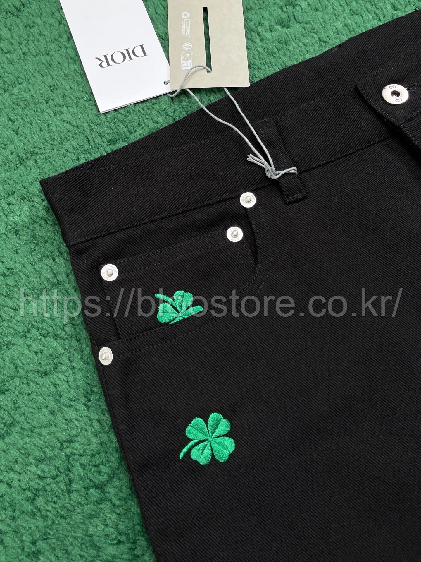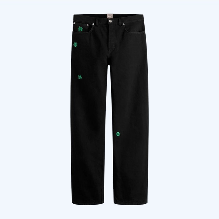 디올 클로버 엠브로이더리 코튼 트윌 롱 레귤러 진